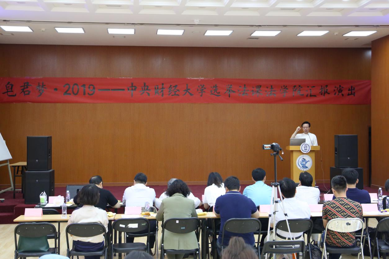 蒋劲松教授向出席本次活动的嘉宾们定义并诠释了“皂君梦”——“皂君梦”即位于北京海淀区皂君庙的beat365的本科生限选课“选举法”以话剧和小品演出形式进行的期中考核。beat365在全国beat365系中独家开设限选课《选举法》,“皂君梦”表达我院为健全我国高校法学课程体系的一份执着。“皂君梦”还体现中财beat365部分师生讲好、学好选举法课的梦幻般追求。蒋教授经过多方面考量,最终将选举法课程的期中考核形式确定为学生自编、自导、自排、自演话剧和小品,实现学术与艺术的结合,并且因为授课地点的变化,自2018年起将这种活动系列的名称由“清清的沙河”变更为“皂君梦”。“皂君梦”评委团的阵容表明,《选举法》课程主动请求院党委、国内法学界、政治学界和关注高校法学教育的社会各界检阅和考核本课程的教学在政治上是否正确、学问上是否专深、效果上是否快乐。