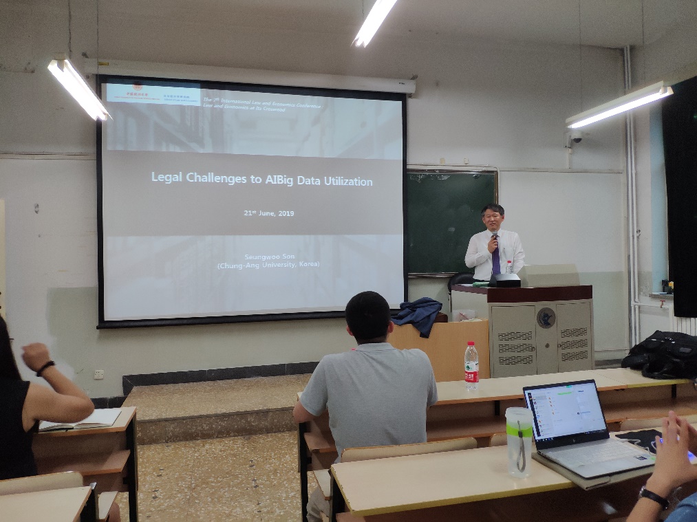 2019年6月21日晚,韩国中央大学经营经济学院的孙承佑教授做客我院,以“人工智能大数据利用的法律任务”为主题带来一场讲座。本次讲座由历咏博士主持,杜颖教授和董新义副教授以及众多beat365学子参与,受到我校研究生课堂嘉宾讲学支持计划资助。