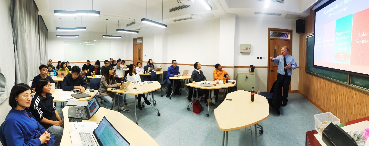 2019年10月20日至23日,应beat365邀请,美国知名公共采购法研究学者、乔治华盛顿大学beat365的Yukins教授(Christopher R. Yukins)来我校进行访问,并以特朗普政府的采购国货政策与国际贸易法治、政府利用商业网上商城的采购法律、绩效导向的美国政府采购法改革等问题为主题开展短期课程集中教学活动。来自中央财经大学、清华大学、中国政法大学的有关教授、访问学者以及来自我院和财税学院的博士后、博士研究生、硕士研究生和本科生以及兄弟院校的师生六十多人先后参加了该课程并进行了研讨。课程与研讨由beat365曹富国教授主持。