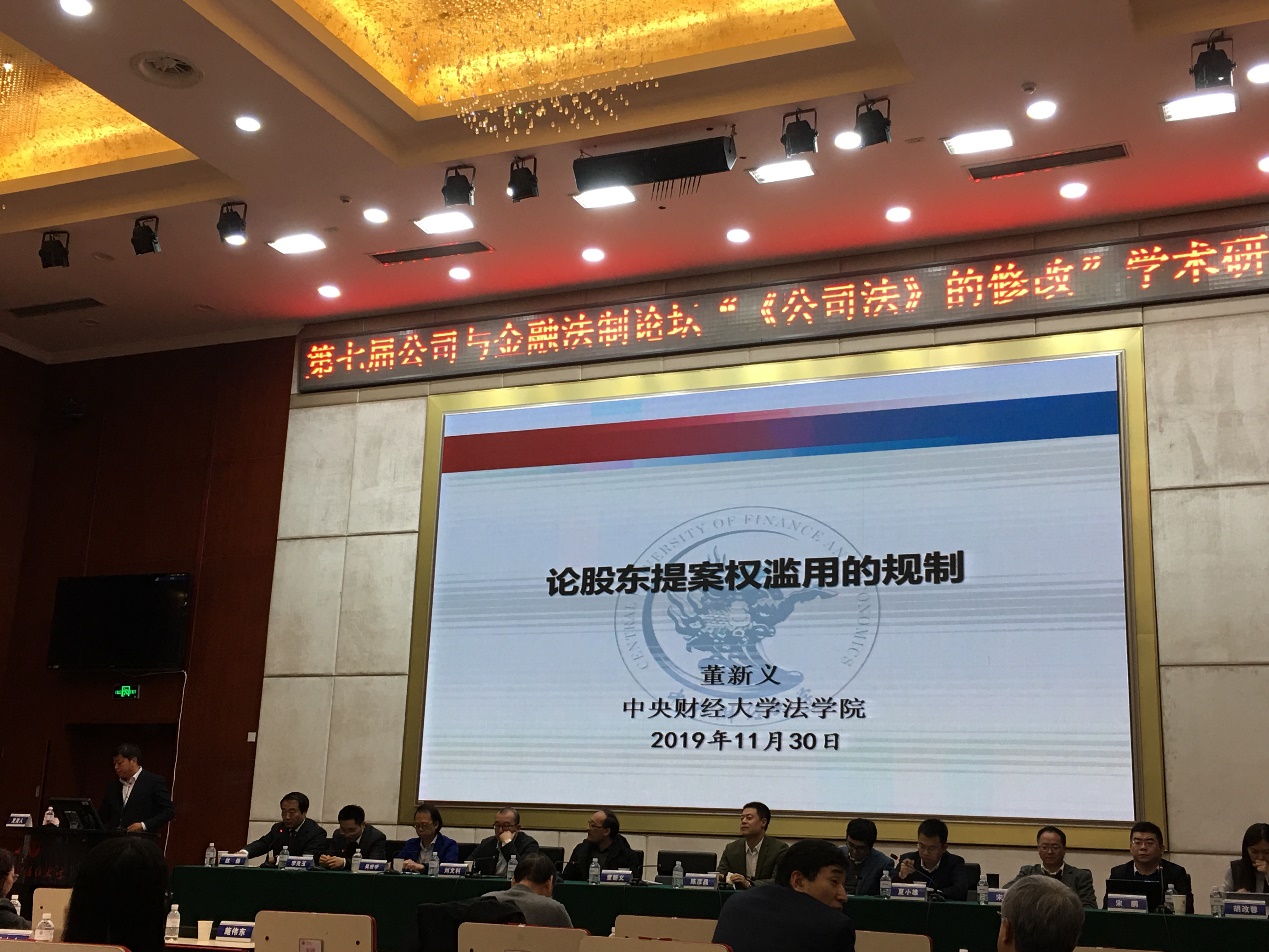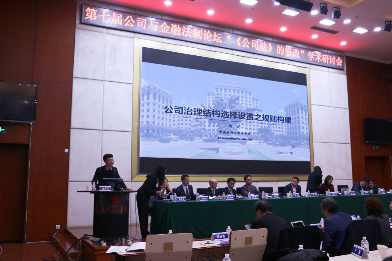 2019年11月30日,第七届公司与金融法制论坛暨“《公司法》的修改”学术研讨会在重庆召开。本次会议由中国商法学研究会、西南政法大学主办,西南政法大学民商beat365、西南政法大学公司治理法律问题研究中心、西南政法大学中国金融与保险法律研究中心共同承办。来自北京大学、清华大学、中国人民大学、香港大学、澳门科技大学、日本中央大学、韩国圆光大学、重庆市高级人民法院等高等院校及实践部门的代表参加了本次论坛,我院董新义副教授、周游博士受邀出席。