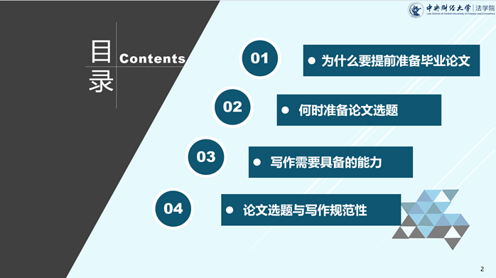 简爱博士结合同学们在写作过程中遇到的问题和难点及自己的切身体会,围绕“新生引航——如何提前为毕业论文做准备”这一主题,以自己的刑法科研方向为例,从具备写毕业论文的能力要件、论文写作需具备的能力以及写作过程及规范性、毕业论文的选题及写作结构等方面分享自己相关的写作经验。