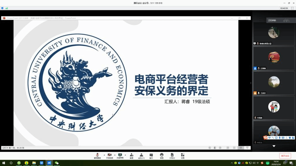 2020年5月24日下午,我院第20期私法工作坊以在线会议的方式如期举行。活动由我院王道发博士主持,朱晓峰副教授、王叶刚副教授、武腾副教授和徐建刚博士作为指导老师参与了本次活动。工作坊活动主要由指导老师引导、发言人展示、其他成员评议、自由讨论以及指导老师总结等环节构成。本次活动共有30余名师生参与报告与讨论。