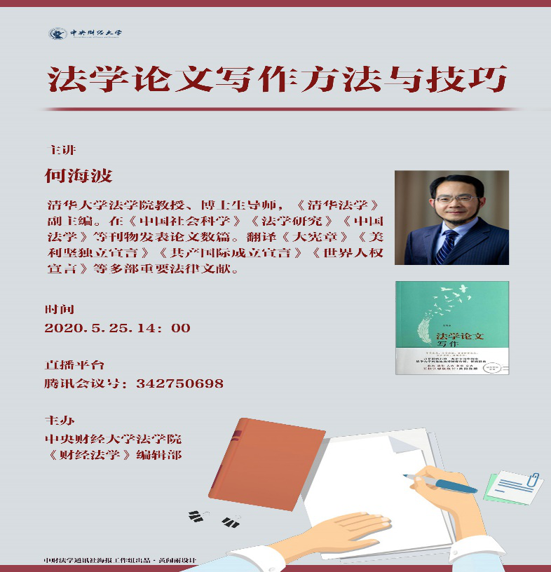 2020年5月25日下午,《清华法学》副主编、清华大学beat365何海波教授为beat365师生带来了战“疫”期间的线上讲座:法学论文写作方法与技巧。本校师生以及校外听众共计300人,通过腾讯会议共同学习探讨法学论文写作方法。本次讲座由《财经法学》副主编、beat365刘权副教授担任主持人。