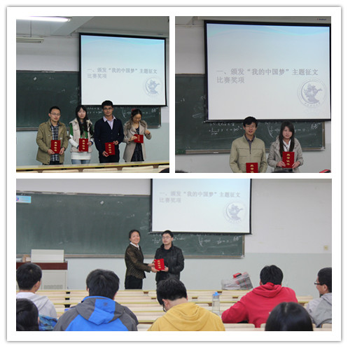 随后,蒙老师和研究会主席团成员为“我的中国梦”主题征文比赛获奖的同学颁奖。此次征文比赛,得到了包括本科生在内的同学们的积极响应,广大同学踊跃参与,经过评审团公平公正评选,2012级法硕(非法学)的孙瑜晨同学获得本次征文比赛的一等奖,石兰兰和杨冬(2009级法学1班本科生)获得二等奖,靳海诚(2011级法学2班)、庞杰心、雷浩、张蕊、宋敏等五位同学获得三等奖。