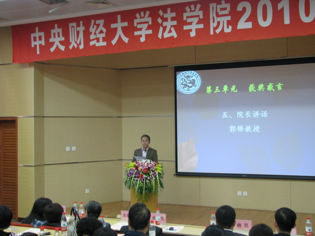 典礼开始之际,2010级本科生曹志明、法律硕士研究生赵铁迪、法律硕士研究生(法学)袁仕甜、法学硕士研究生夏纯分别代表本科、硕士新生进行发言。四位同学在表达了加入中财beat365这个大家庭的喜悦激动之情的同时,也表示要秉承法律人正义与公平的信念,脚踏实地学习,独立思考,积极创新。2007级本科生李树荣同学代表本科生对新同学的到来表示欢迎,并从树立理想、进行实践等方面与同学们分享心得体会。