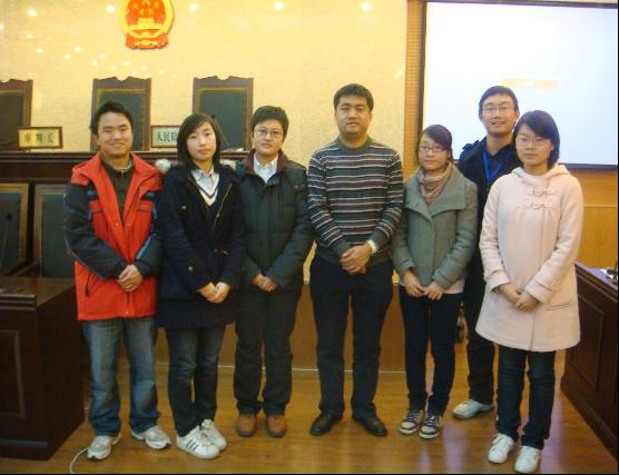 我院代表队由2007级法学本科生黄卉、陈世纪、李树荣、姜艾佳、李波、赵宇等六名同学组成,于洪伟老师任指导教师,经过将近一个月的拼搏,一路杀进半决赛,最终荣获北京市首届大学生模拟法庭竞赛第三名。