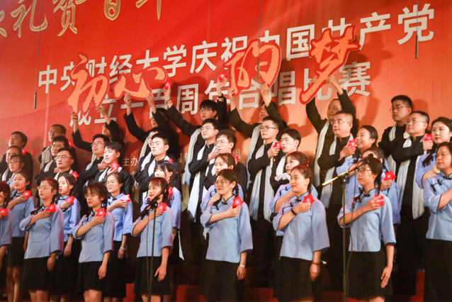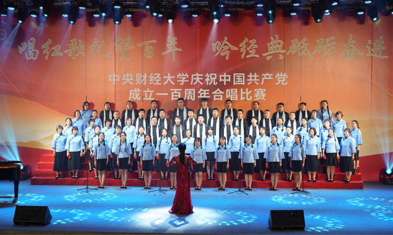 2021年5月26日下午,中央财经大学“唱红歌礼赞百年,吟经典砥砺奋进”庆祝中国共产党成立100周年合唱总决赛在学院南路校区学术会堂206举行。全校二十一支参赛队伍中共有十支队伍进入决赛,我院合唱队60名师生以一曲铿锵激昂的《初心的梦》与其他九支队伍角逐比拼,共同用音乐感悟红色党史,用歌声牢记初心使命。